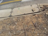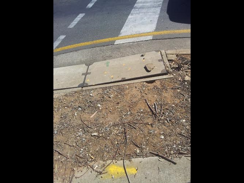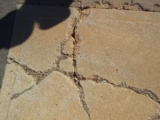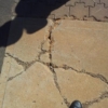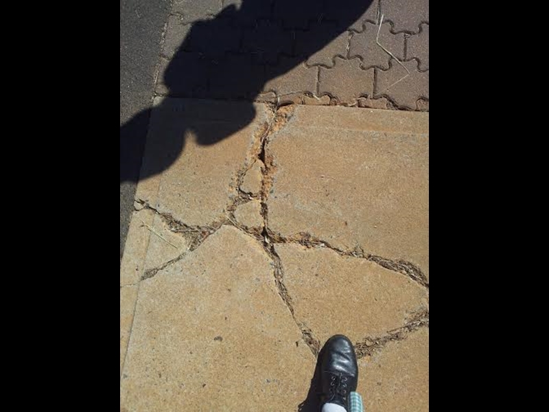another cracked path a hazard to anyone especially people in wheelchairs because there wheels could get stuck in the cracks.