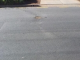 this pot hole in the ground is unsafe for drivers and pedestrians that may be crossing the road
