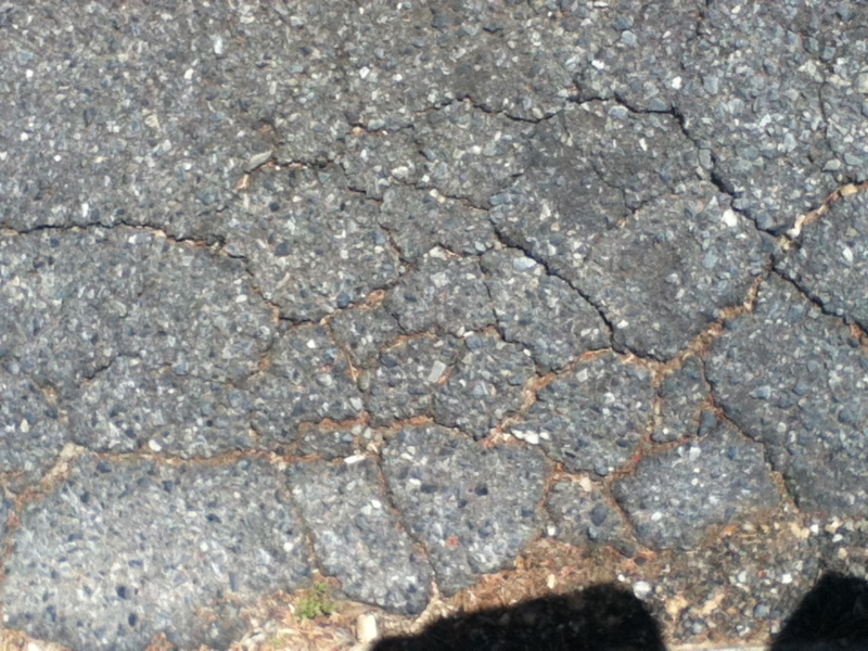 This large crack in road is dangerous anyone could trip and hurt themselves and should be patched up.