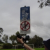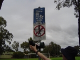 there are doggy duty bags to pick up dog droppings. But there is graffiti on the sign so people can not see it from far away.