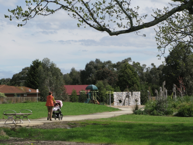 This path follows the former course of a local creek. This is also following the footsteps of over 20,000 generations of Aboriginal people, following 'songlines' of their creator spirit, Bunjil
