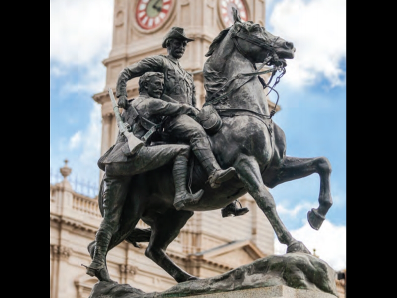 Created by sculptor James White in honour of Australian Soldiers who fought in the South African War (1899-1902). The Foundation stone was laid on 18 May 1901 by H.R.H The Duke of York (George V).