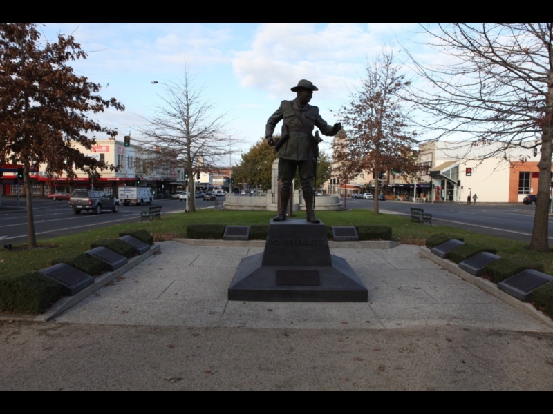 Harold Edward 'Pompey' Elliot was first and foremost a soldier. The four plaques surround the sculpture and plinth detail part of the story of the Major-General and Senator.