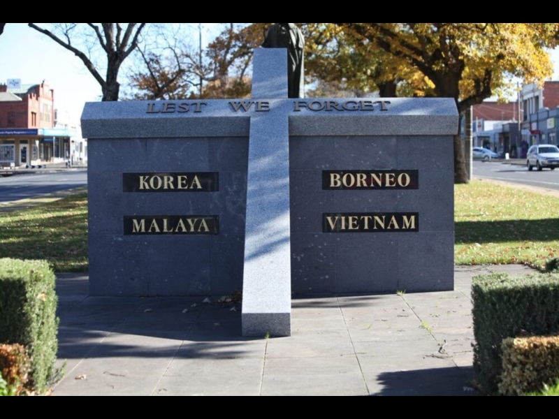 'Lest We Forget' marks the sacrifices of Australian forces involved in the conflicts of South East Asia, Including the Korean War, the Malayan Emergency, the Borneo Uprising and the Vietnam War.