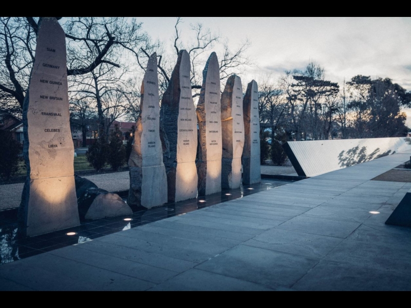 This memorial to Australian Prisoners of War is dedicated to more than 36,000 Australian men and women who were held captive as prisoners by the enemy during the Boer War, WW1, W W2 and the Korean War