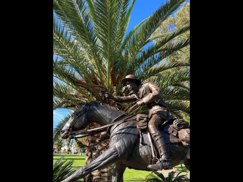 The sculpture depicts a horse and rider and signifies the Battle of Beersheba and local solider, farmer and politician, Sir Murray Bourchier.