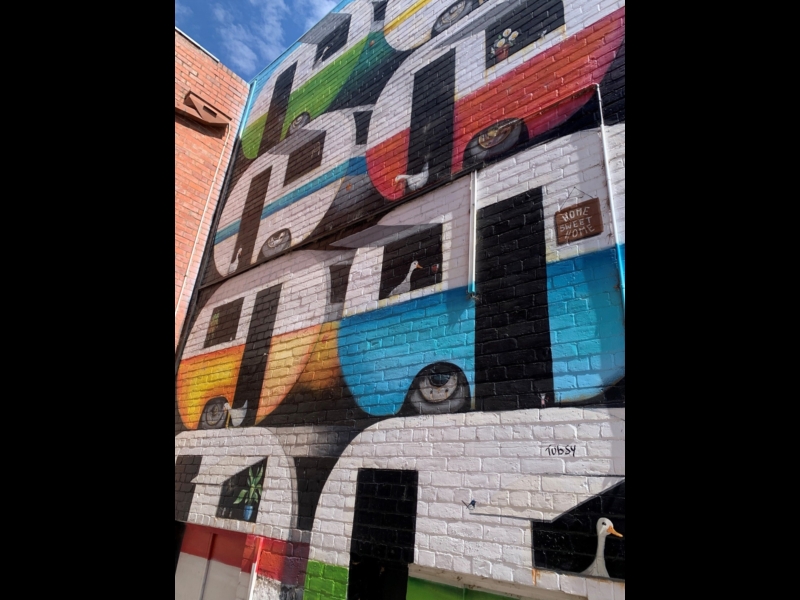 The front of Shepparton Brewery was given a creative facelift by local artist Tank. If you look closely you'll find a couple of mice on the mural enjoying pizza and a cold drink at the Brewery.