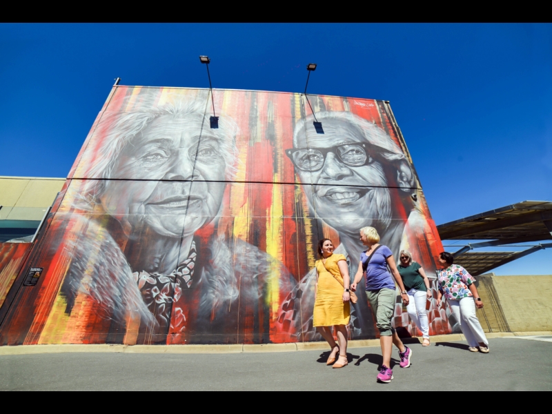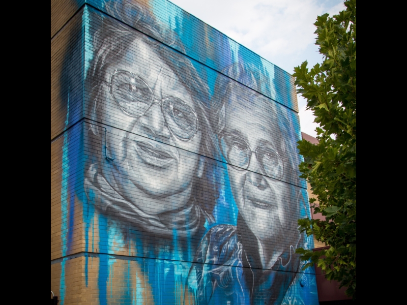 Painted by well known artist Matt Adnate features Aunty Violet Harrison and Aunty Mary James - two significant past local elders.