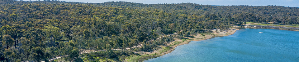 The western half of the reservoir trail has a beautiful view across the water - which sparkles on a sunny day! PHOTO CREDIT: Explore Bendigo (link)