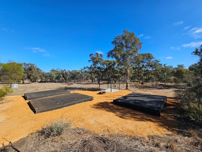 Halfway point of the trail with tent platforms, fire pit, shelter and access to toilets. Easy vehicle access from Dimboola-Rainbow Road.
